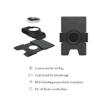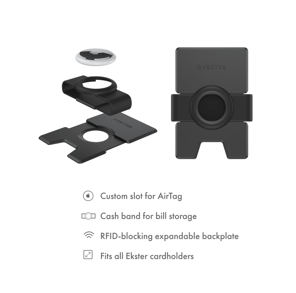 Say goodbye to lost wallet worries with this cardholder add-on. Slide the AirTag Cash Band onto any Ekster Cardholder and insert your AirTag to make your wallet trackable with the Find Myâ app. The recycled 6061 aluminum backplate blocks RFID signals and the band offers additional storage space while keeping a slim profile.