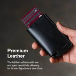 - Engineered leather flap for secure closure