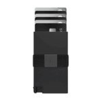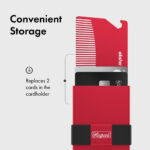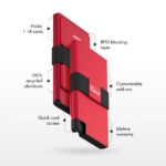 Holds 1-12 cards and bills Quick card access at the click of a button Blocks RFID to prevent wireless theft