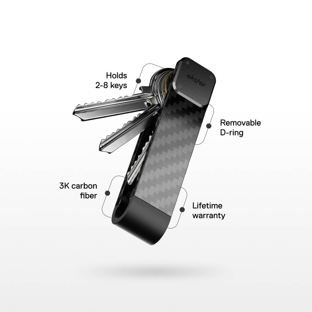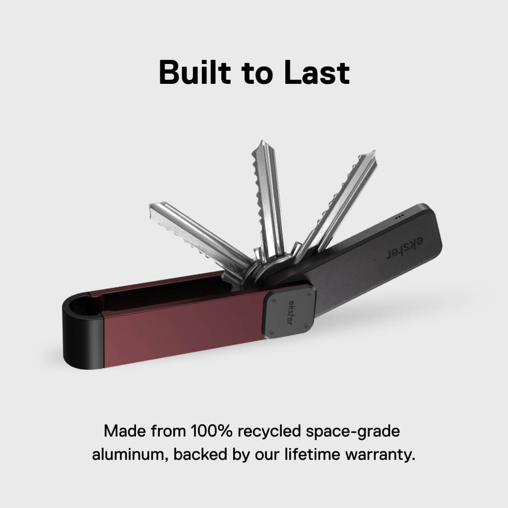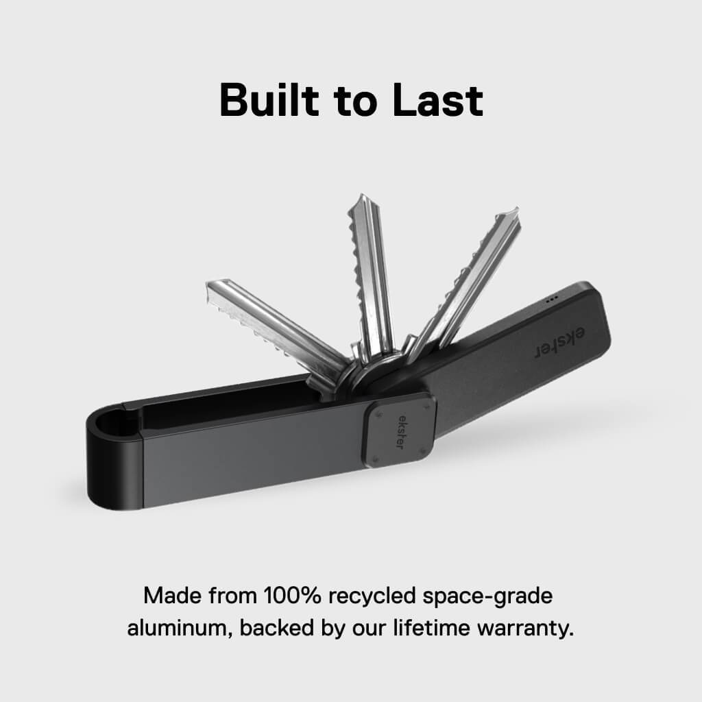 An easy-access metal key holder that organizes 2-8 keys in a silent stack. Made from 100% recycled space-grade aluminum and backed by our lifetime warranty, the key case can be modified with a D ring for larger keys or car keys. Shop matching bundles to save 35% and add a Key Tracker to make it unlosable.